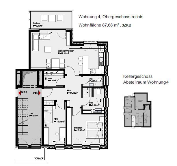 Wohnfläche ca.87,68 m²
