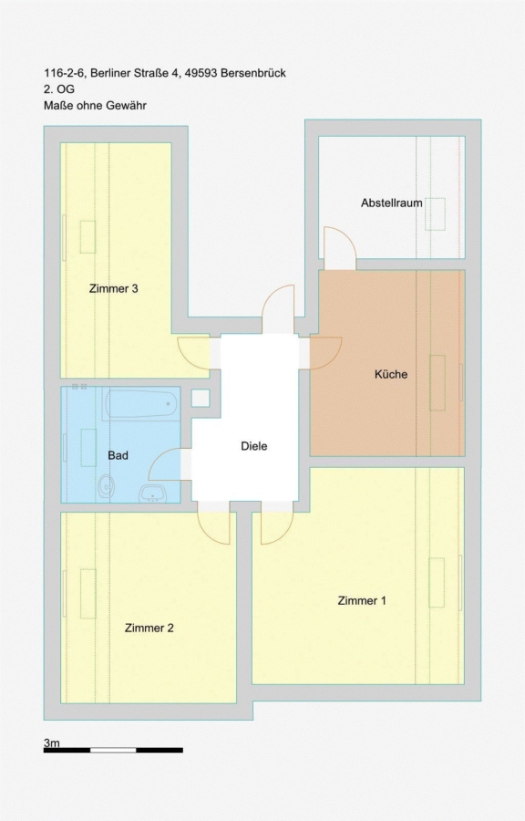 Der Nebenkostenabschlag versteht sich ohne Stromkosten. Hierzu sind mit dem Versorger entsprechende Verträge zu schließen. Bei den Formalitäten sind wir Ihnen gerne behilflich. Der Mieter hat eine einmalige und verzinslich angelegte Einzahlung auf Genossenschaftsanteile in Höhe von 600,00 Euro vor Vertragsabschluss zu leisten. Die Offerte ist freibleibend. Irrtum, Zwischenvermietungen und Preisänderungen bleiben vorbehalten. Die Wohnung wird bezugsfertig übergeben.