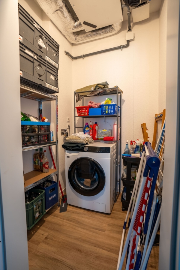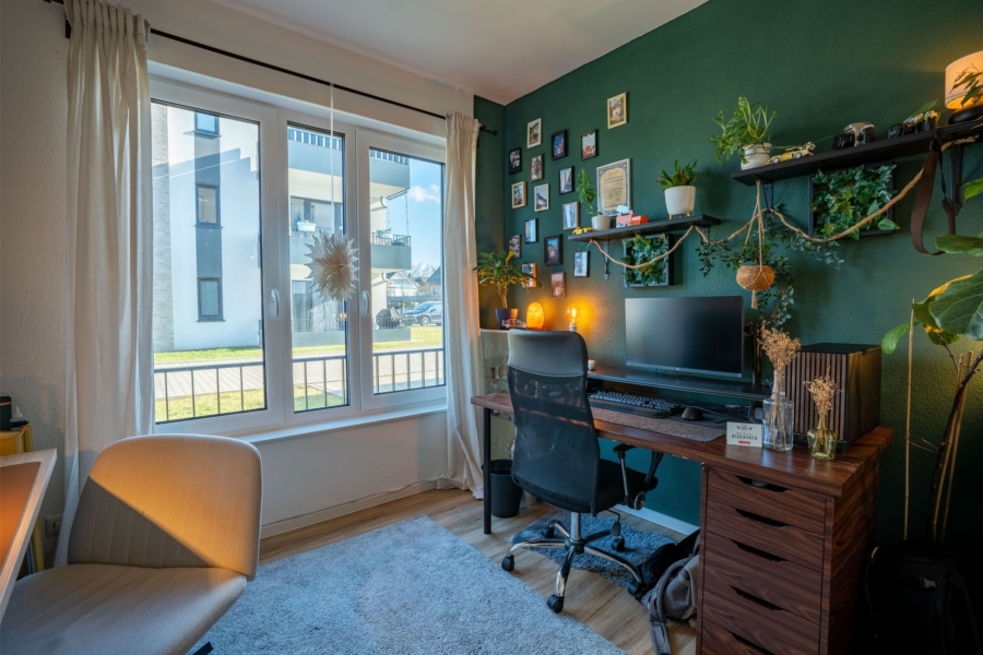 Die hier angebotene 3-Zimmer-Wohnung befindet sich im Erdgeschoss dieser Wohnanlage und verfügt über rund 68 m² Wohnfläche, die sich auf ein kombiniertes Wohn-/Esszimmer mit offener Küche, 2 Schlafzimmer, Badezimmer mit ebenerdiger Dusche, Hauswirtschaftsraum, Abstellraum und Flur verteilt. Das Wohnzimmer bietet einen direkten Zugang zur sonnigen Terrasse. Zur Wohnung gehören eine maßgefertigte Einbauküche sowie ein Carport-Stellplatz mit E-Ladesäule. Über Nacht kann bequem der Akku des Elektroautos an den E-Ladesäulen der zahlreichen Carports geladen werden.